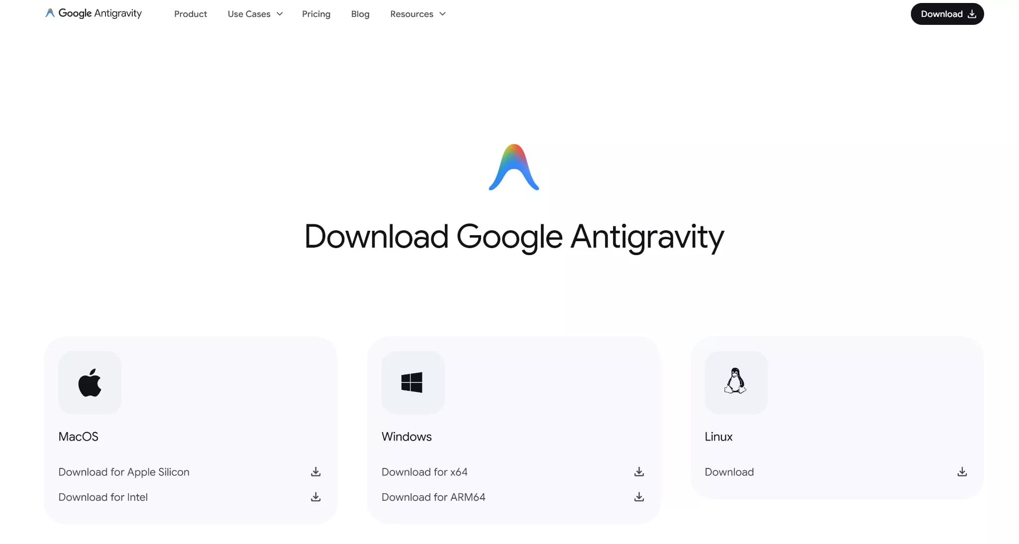 - Go to the official Google Antigravity download page (https://antigravity.google/download)