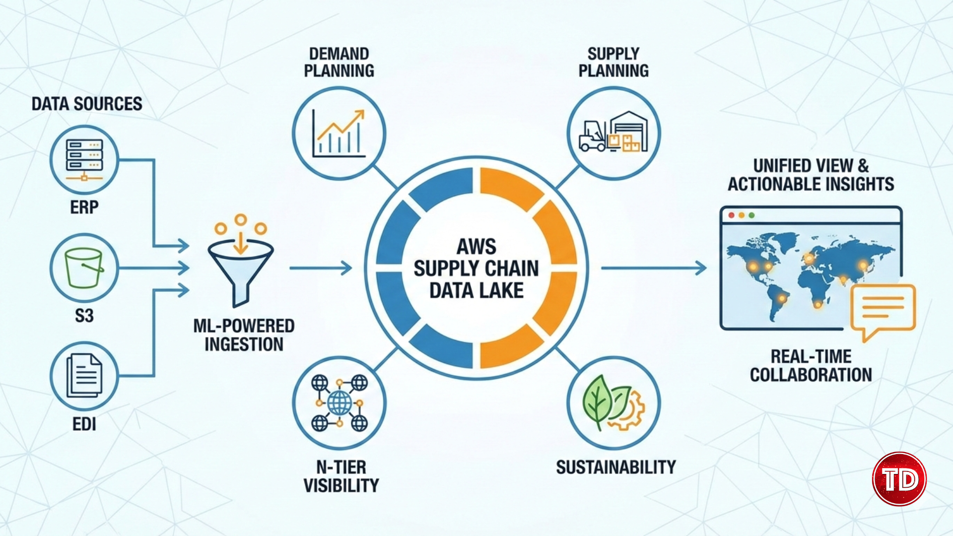 - Utilizes AWS-managed data ingestion pipelines to unify data from ERP systems, data lakes, and third-party sources.