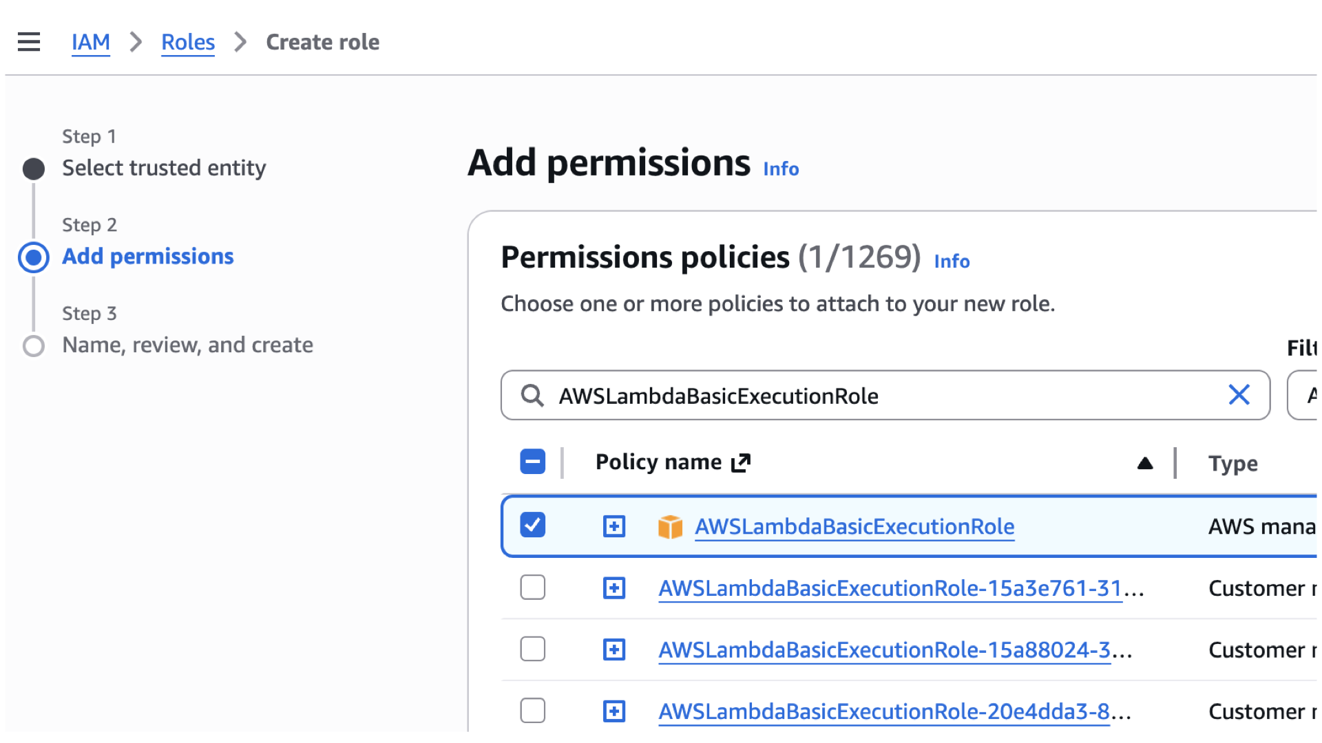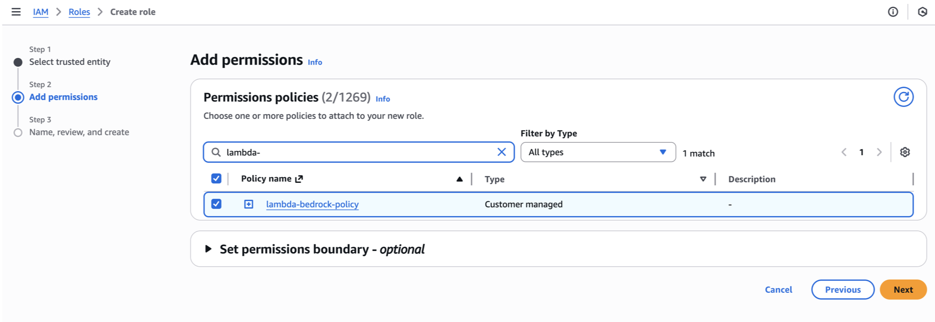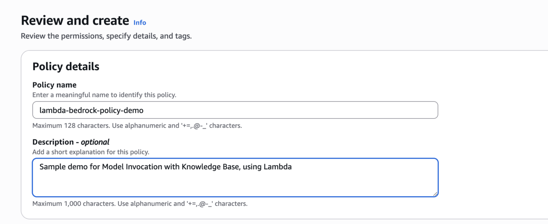 IAM policy name: ex. `lambda-bedrock-policy-demo`