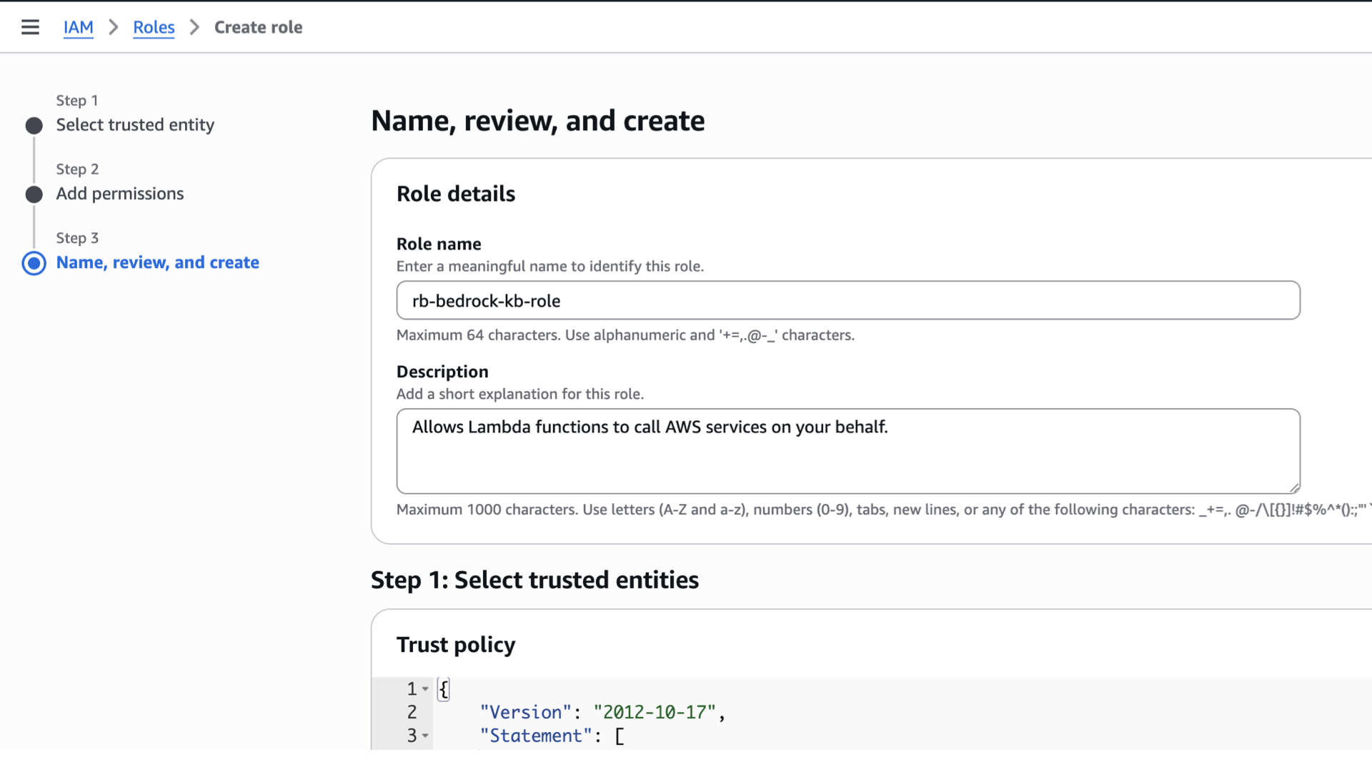 Step 1: IAM & Permissions for our Amazon Bedrock and Lambda (Before creating the Knowledge Base)