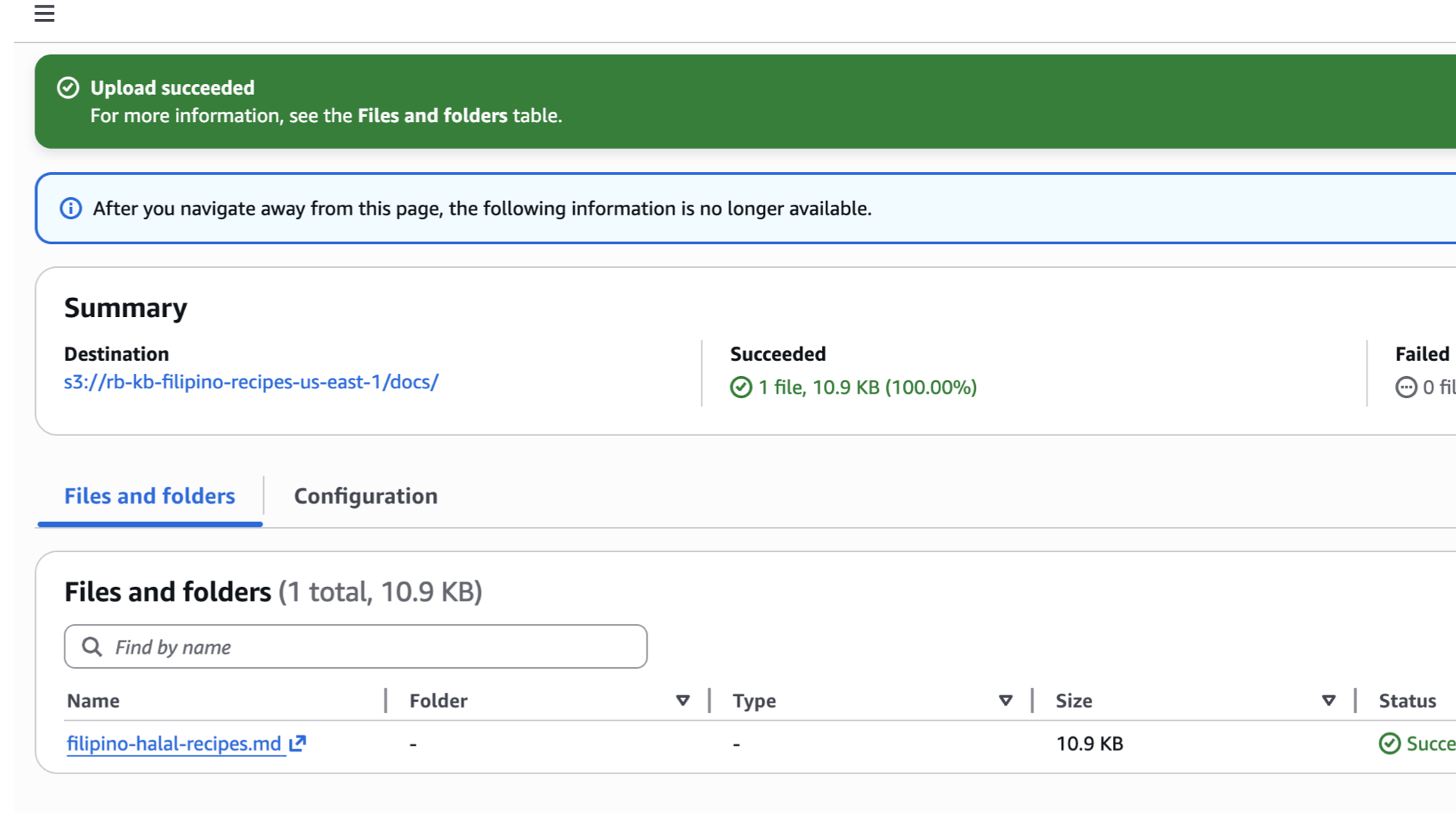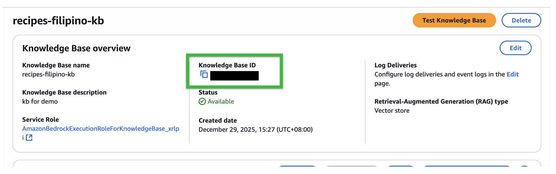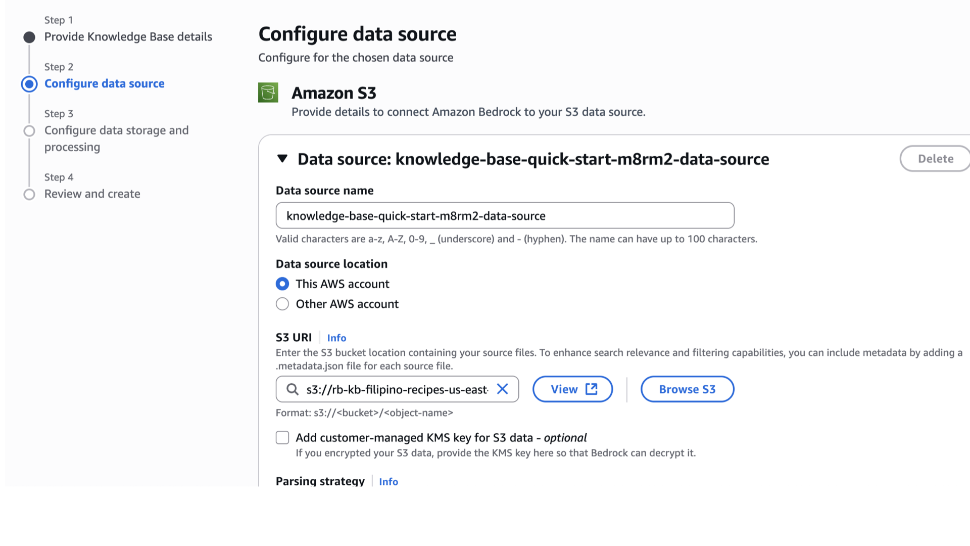 rb-kb-<project>-<region>→rb-kb-filipino-recipes-us-east-1- rb = recipe book