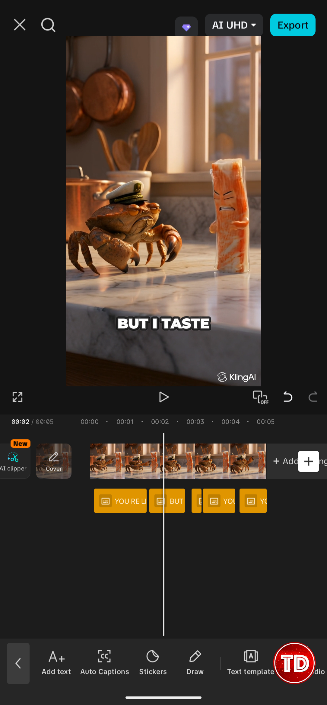 Now every script follows that exact rhythm. If you’ve seen a video format you want to replicate, just break down the pattern and add it as a rule. The AI will follow it every time. Script Output Now you need a still image of your characters. You can do this directly in Kling, or use another image generator like Gemini’s Nano Banana Pro and then upload it. Here’s a prompt structure that works: Pixar-style 3D render, cinematic lighting. [Paste the scene from your generated script] [Paste the characters from your generated script] [Note the positioning: who’s on the left, who’s on the right] Aspect ratio: 9:16 A few things to keep in mind: Generated Image Output I generated this image using Gemini’s Nano Banana Pro. I chose it because, after testing multiple image generators, Nano Banana Pro produced the most realistic results. The texture, lighting, and proportions looked natural rather than that familiar “AI-generated” smoothness. If you want to see how it compared to other tools like Claude, I wrote a full breakdown here: Can Gemini 3 Replace My AI Toolkit? After generating, I brought it into Canva to clean things up a bit. I used the Image Upscaler to boost the resolution and the Magic Eraser to remove the watermark. Upload your image to Kling AI and use the image-to-video feature. Then give it a prompt that includes your script and some animation directions. Here’s a template: Use the uploaded image as the starting frame. Keep all character designs exactly as shown. DURATION: 5 seconds ASPECT RATIO: 9:16 ANIMATION: – Characters have subtle idle movement (slight swaying, breathing) – Expressions change to match the dialogue – Lip sync matched to speech AUDIO: – [Character A]: [describe their voice] – [Character B]: [describe their voice] – Soft ambient sound – No background music DIALOGUE: [Paste your script here] CAMERA: – Stable shot or very slow push-in – Keep both characters in frame Note: You’ll likely need to tweak your prompt a few times. Sometimes the dialogue gets spoken by the wrong character, or the tone doesn’t match what you wanted. This is normal. Try adjusting your speaker labels, simplifying emotion descriptors, or rewording lines until you get the result you’re looking for. You can also check out Kling AI’s official audio guide for more tips on getting the best results. Step 4 (Optional): Add Captions I added captions to mine using mobile CapCut’s auto-caption feature. It only takes a few seconds and makes the video way more engaging, especially since most people scroll with sound off.