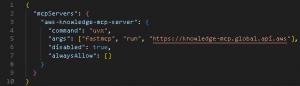 "args": ["fastmcp", "run", "https://knowledge-mcp.global.api.aws"],