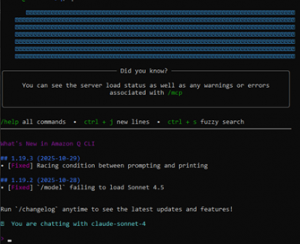 • You can now launch Amazon Q Developer CLI via command: q chat