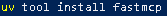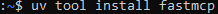 • Next, install fastmcp as a tool via uv command: uv tool install fastmcp