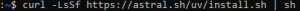 • Install uv from Astral via command: curl -LsSf https://astral.sh/uv/install.sh | sh