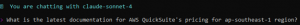 What is the latest documentation for AWS QuickSuite’s pricing for ap-southeast-1 region?